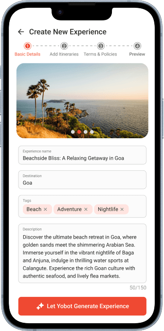 Yobot is your AI guide, designed to simplify experience planning. Whether you're looking for destination recommendations or packing tips, Yobot offers quick, personalized suggestions.